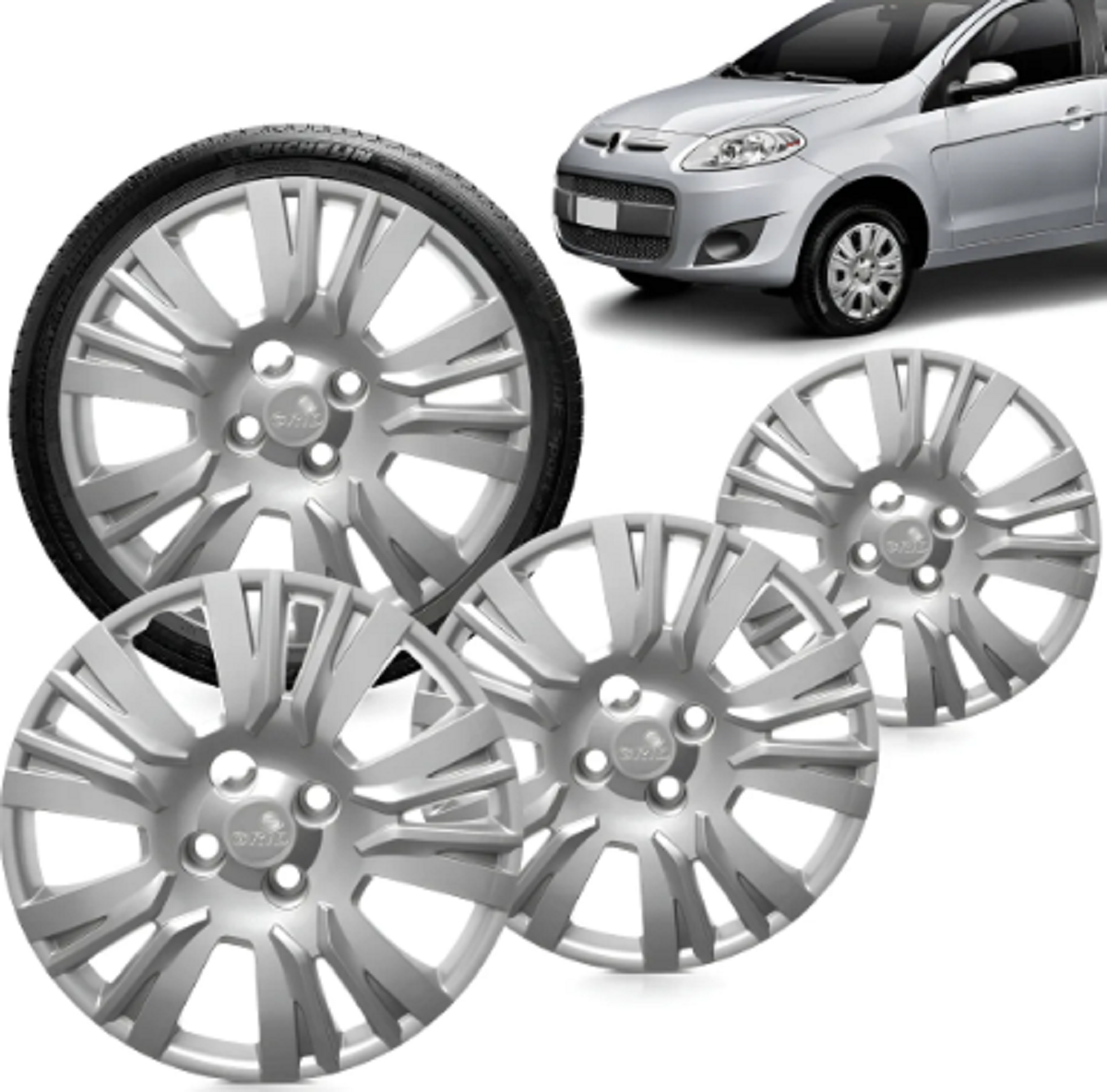 Kit 4 Calota Palio Essence 2014 2015 Aro 13 Prata Cubo Baixo