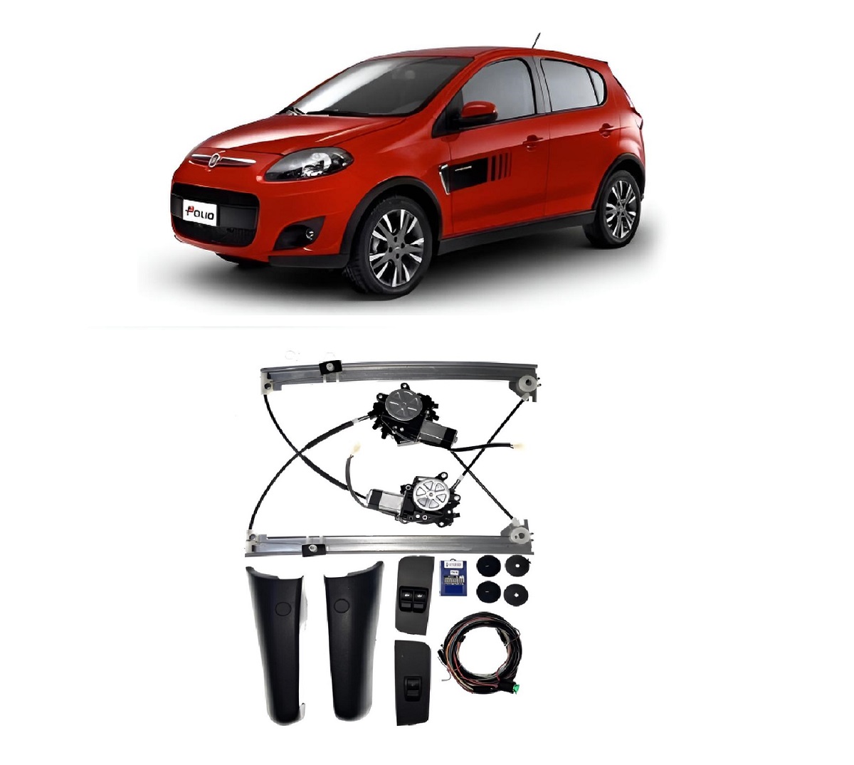 - Kit Vidro Eletrico Dianteiro - Fácil Instalação - Permite Acionamento dos Vidros Via Alarme - Chicote Anti-Chamas de Acordo Com Especificações do CONTRAN - Alivio de pressão alternado (Anti-vácuo) - Temporização de 1 Minuto. - Aplicação: Fiat PalioNovo /Strada A Partir De 2004 2 Portas